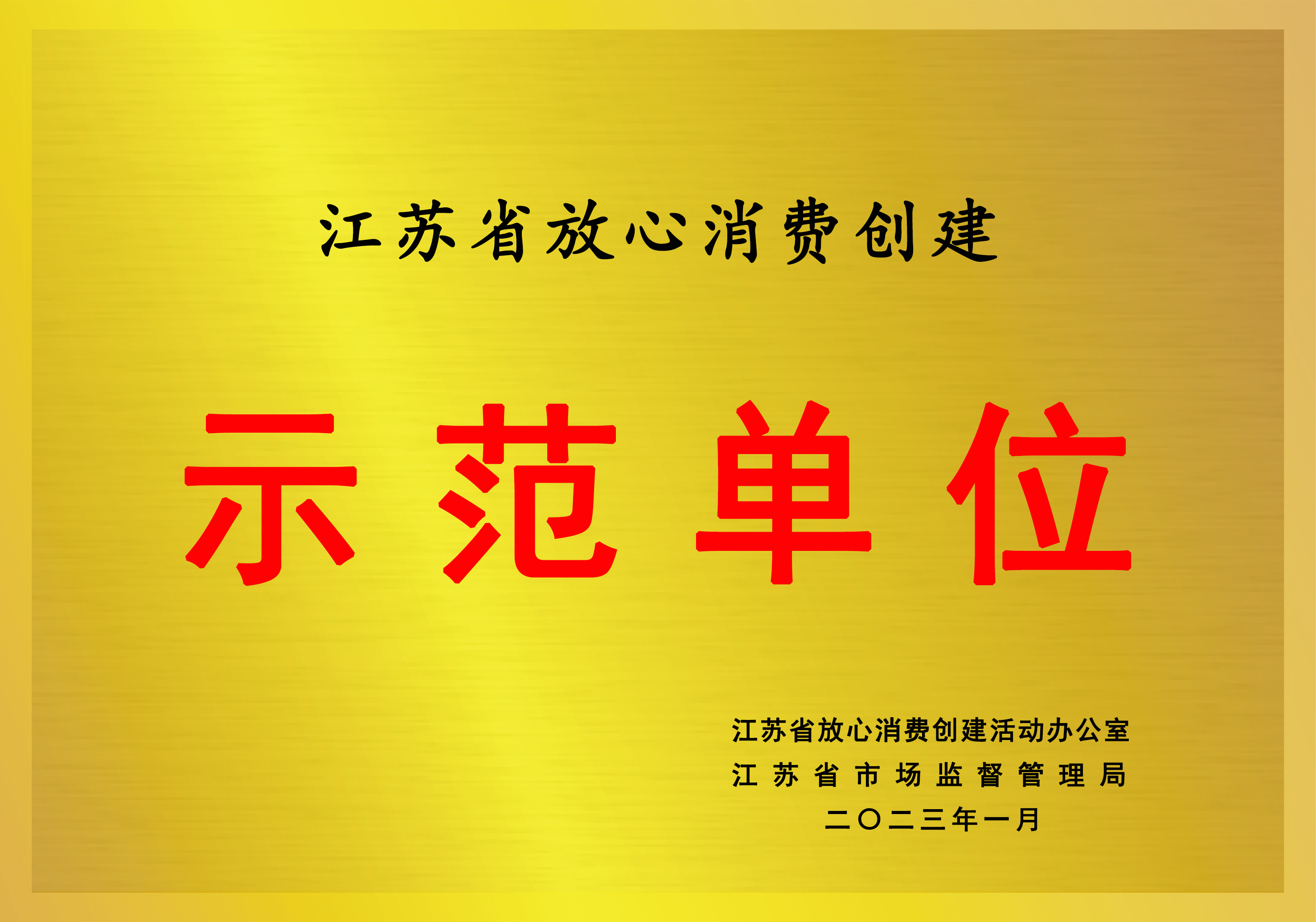 江蘇省放心消費(fèi)創(chuàng)建示范單位